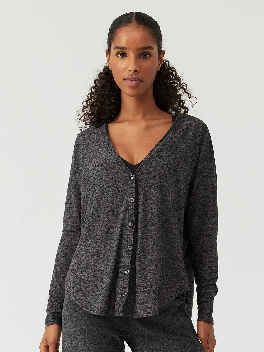 Put this on and say it’s your favorite. A lightweight, breathable cardigan featuring a high-low hem and front buttons for an open or closed look.