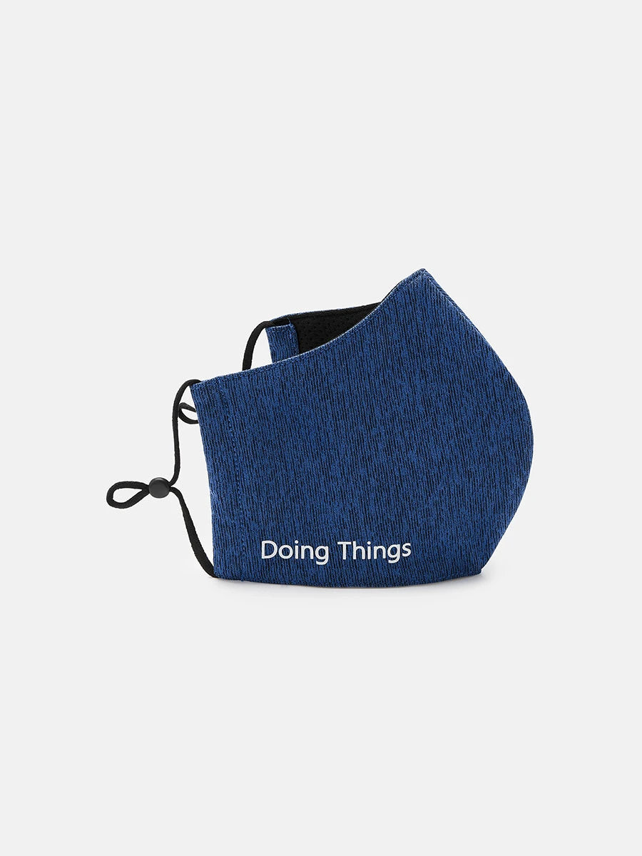 A 5-pack of dual-layered, breathable face masks with adjustable straps. Finished with signature “Doing Things” branding.