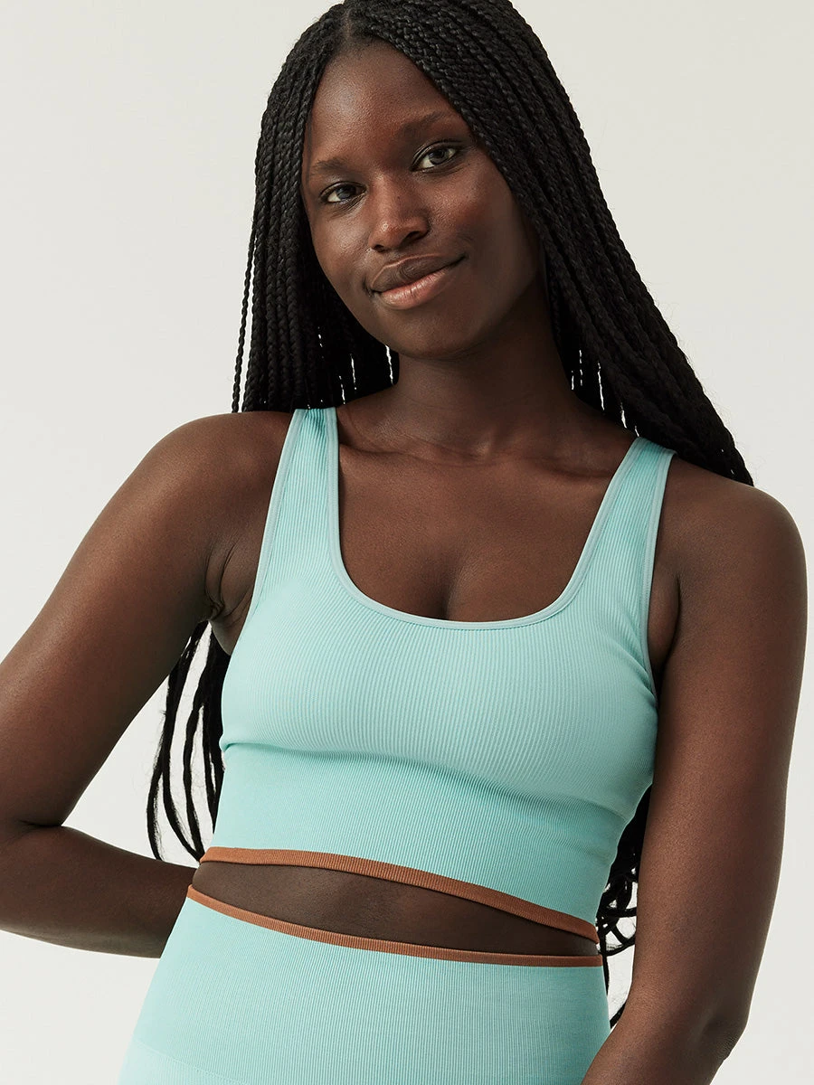 A double scoop low-support bra featuring a longline silhouette for more coverage. SeamlessRib is compressive but never tight, midweight but never sheer, and known to not budge during even your biggest bends and stretches.
