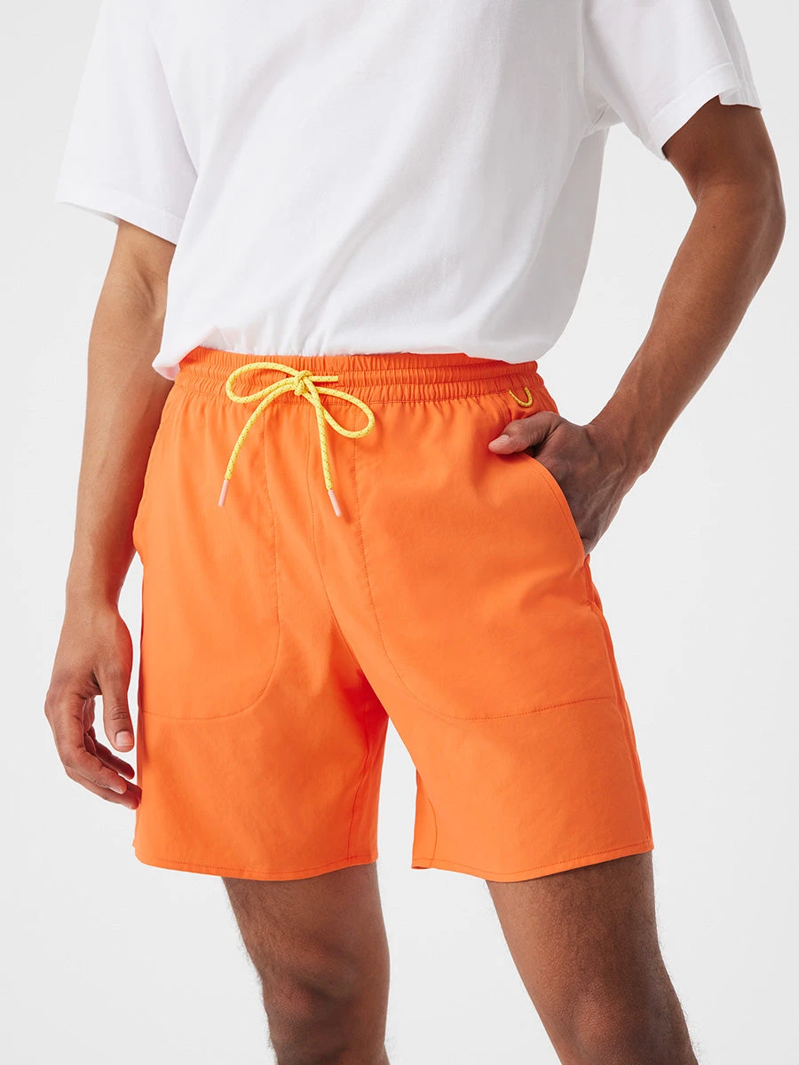 Our truest hybrid short in a longer length. Made in cooling, lightweight, quick-drying SolarCool with SPF 50 protection. Featuring a super-soft mesh liner, two roomy pockets, a media pocket, and a zip-secure pocket. Hike, bike, and swim in them — we dare you.